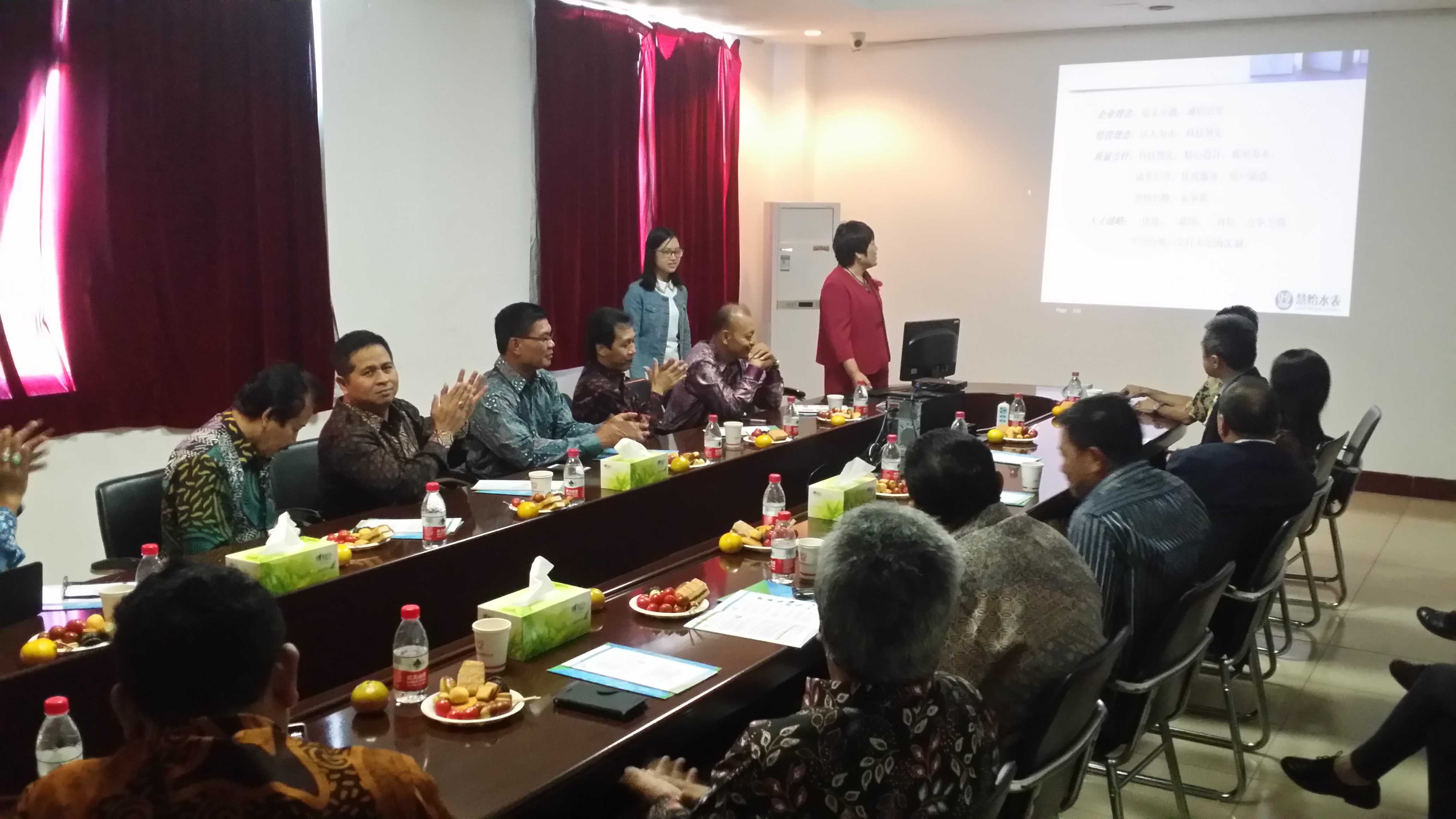 国际外贸部负责人对印尼友人进行简短介绍后,王总以PPT图文并茂形式向来宾介绍公司现况,随后印尼友人兴致勃勃参观了顺水水表的厂区、生产车间及展厅,印尼客户在全方位了解公司的规模实力、研发实力及详细的产品介绍后,高度赞扬了顺水水表产品的质量和热情的服务,对顺水的产品产生浓厚的兴趣并期望与顺水长期合作。
