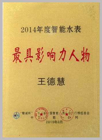 在本届揭榜大会中,经过专家组的评定,我公司王总再次获得智能水表“最具影响力人物”荣誉称号 ,在过去的十二届智能水表揭榜会上,王总屡屡获得此项殊荣,值得让人敬佩!作为顺水水表有限责任公司的总经理,王总荣膺“2013年度智能水表最具影响力人物”荣誉称号,对他个人和慧怡来说,都是莫大的鞭策和鼓励。